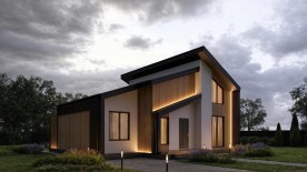 Прекрасный дом в Скандинавском стиле площадью 149м2. Этот дом является истинным фаворитом наших клиентов. Оригинальная форма крыши зонирует дом на 2 части – с высоким потолком зона отдыха в кухне-гостиной, с низким – спальный блок.
