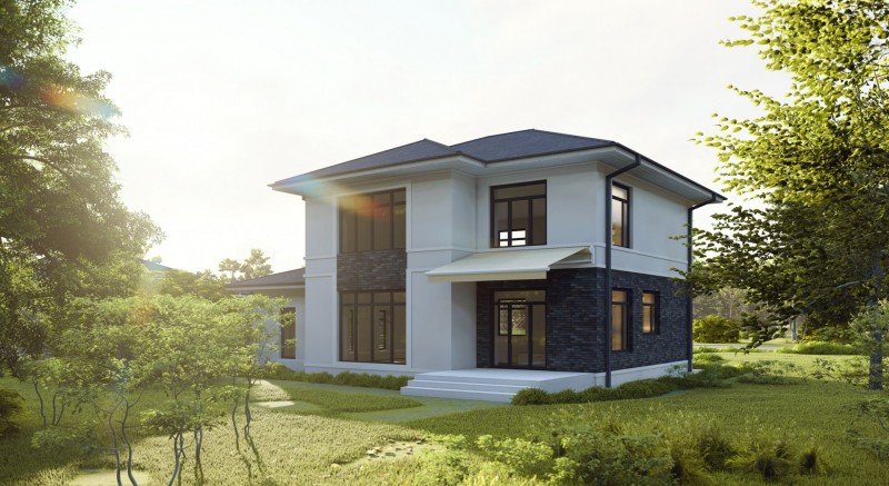 Красивый большой двухэтажный дом с оригинальными комбинированными фасадами облицовочный кирпич и декоративная штукатурка, интересной кровлей и гаражом на один авто. Имеет четыре спальни, одна из них мастер спальня с гардеробной, просторную кухню гостиную, котельную, постирочную, второй санузел, закрытое от осадков крыльцо и просторную террасу