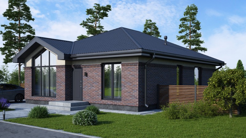 Функциональный одноэтажный дом с оригинальными комбинированными фасадами, интересной кровлей. Имеет три спальни, одна из них мастер спальня с гардеробной и санузлом, просторную кухню гостиную с выходом на задний двор, котельную‑постирочную, второй санузел.