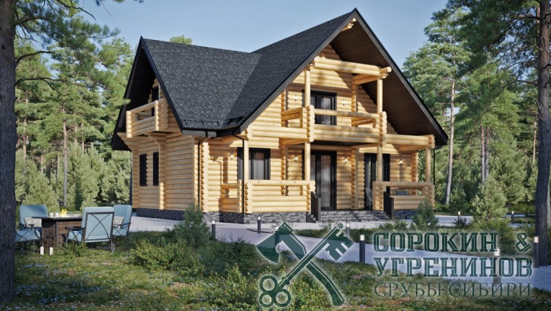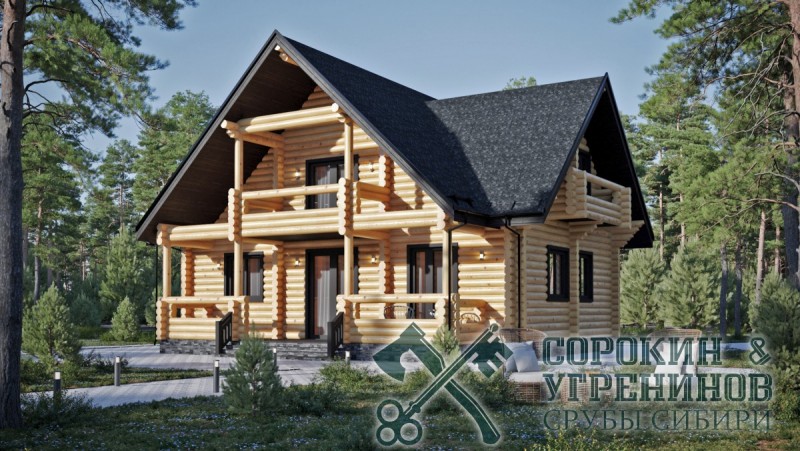 Проект дома из бревна диаметром 260мм, размер сруба по осям 11м х 12м, общая площадь дома 187м2, объём бревна в срубе 170м3. Большой бревенчатый рубленый дом из бревна кедра, тёплый с удобной планировкой, для круглогодичного проживания большой семьи. Рубка сруба производилась в традиционную русскую чашу обло, окорка бревен производилась скобелем. Дом установлен в Новосибирской области, п. Мирный, в 2013 году.