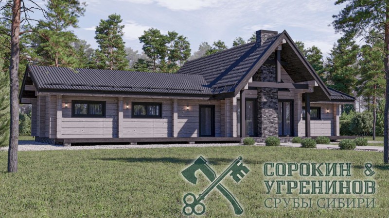 Индивидуальный проект жилого дома из лафета сечением 250х400мм. Общая площадь дома 250м2. Одноэтажный дом имеет несколько комнат, некоторые внутренние стены выполнены по каркасной технологии, что экономит стоимость сруба и увеличивает внутреннее пространство дома. Возможно сделать антрессоль, что позволит увеличить площадь дома, сделать дополнительные спальные места.