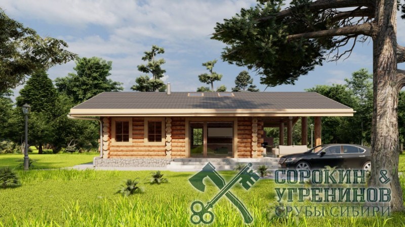 Отличная русская баня рубленая из бревна кедра, общей площадью 125м2. Размер сруба 9 на 13 метров. Классический проект русской бревенчатой бани из бревна диаметром 280-320мм. Баня имеет большую гостиную комнату с каминной печью, большие окна в пол, много света, а на потолке мансардные окна, и главное объемная и просторная парная, есть отдельная помывочная и санузел, хозяйственный узел, и большая терраса с кирпичной печью-барбекю.